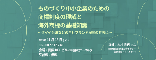 ものづくり中小企業のための商標制度の理解と海外商標の基礎知識 ~タイや台湾などへの自社ブランド展開の参考に~